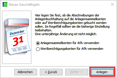 - im letzten Schritt wird nun das neue Geschäftsjahr angelegt: