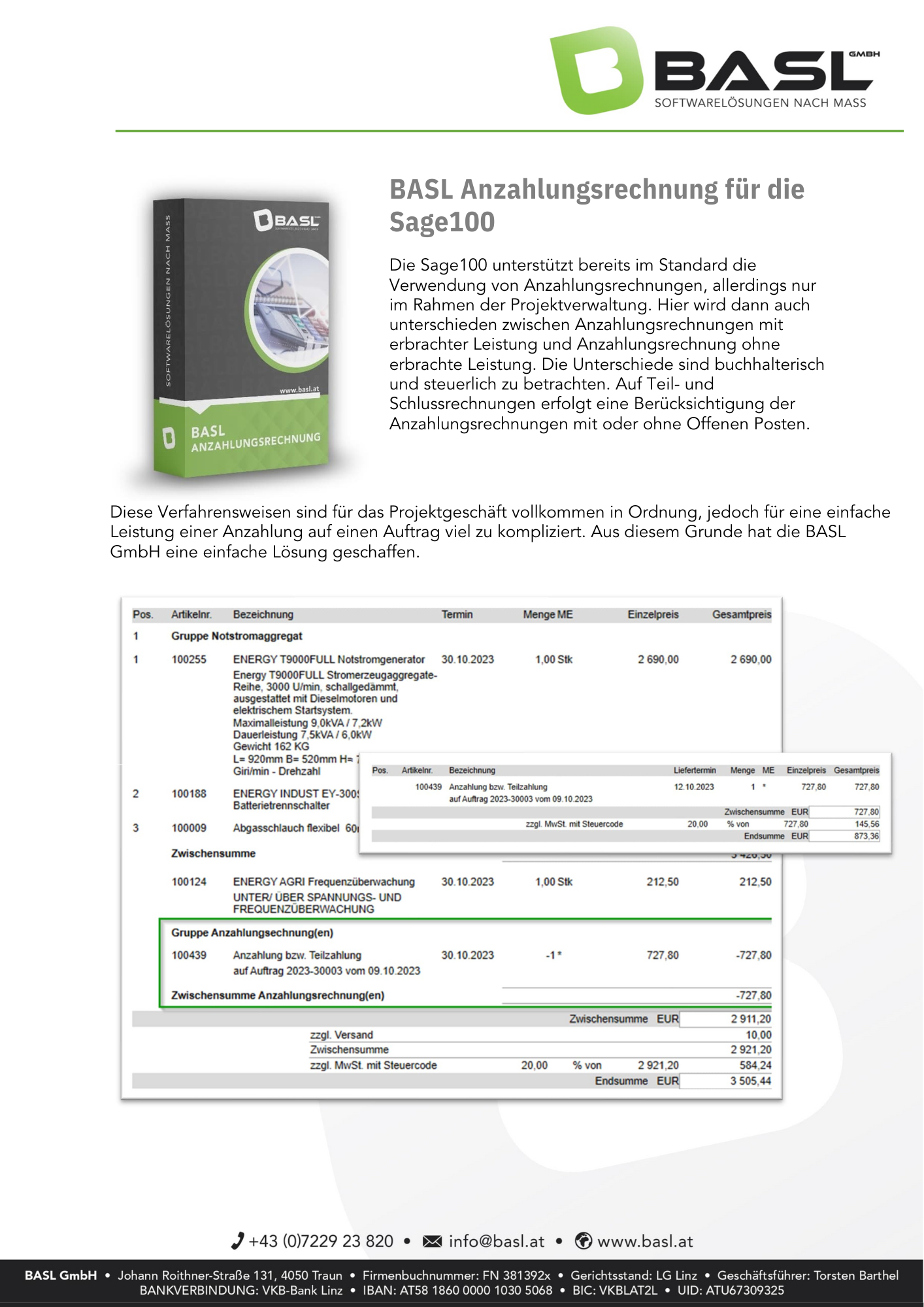 Datenblatt BASL Anzahlungsrechnung